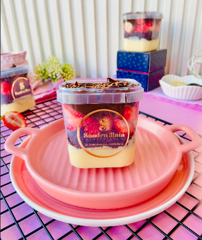 Uma combinação bem equilibrada de Crema com Brigadeiro Branco. Geleia de Frutas de Vermelhas e massa de baunilha.